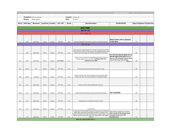 This week, we focused on finalizing the crew for the Day 1 shoot and reserving the equipment. I coordinated with my assistant director to schedule the shots, allotting enough time for each shot while also keeping track of how long it would take to set up for VFX shots. Made a google food form for everybody to select their choice of food item they want to have, also arranged transportation for the crew which was sent out through email.